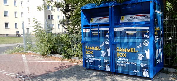Foto: Bunt beklebter Altkleidercontainer